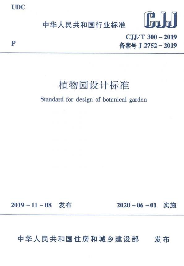 根據(jù)中華人民共和國住房和城鄉(xiāng)建設(shè)部2019年第286號(hào)公告,國家行業(yè)標(biāo)準(zhǔn)《植物園設(shè)計(jì)標(biāo)準(zhǔn)》,編號(hào)為CJJ/T 300-2019,自2020年6月1日起正式施行。