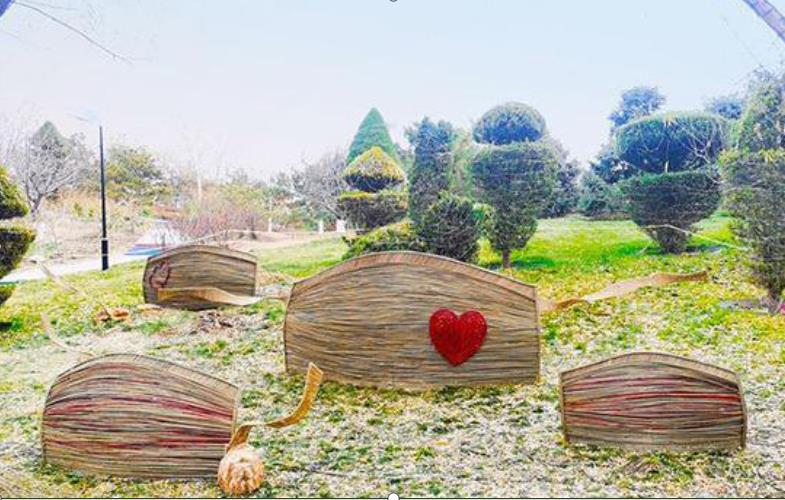 地景藝術(shù)以“生態(tài)環(huán)保、循環(huán)利用、變廢為寶”為理念,以園林廢棄物如柳樹枝、海棠枝、竹枝、桃枝等為主材料,通過設(shè)計(jì)師之手把這些變成了一個(gè)個(gè)栩栩如生的作品,為冬季景觀增色添彩。