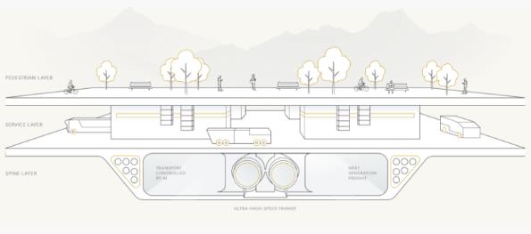這座城市綿延約170公里,整體將與大自然融為一體。地下一層是行人專區(qū),另外兩層則用于基礎(chǔ)設(shè)施和公共交通建設(shè)。雖然沒有私家車,但是無論生活、工作還是娛樂,步行的話都能夠在五分鐘內(nèi)到達。即使乘坐公共交通,日常通勤時間也不會高于20分鐘后。